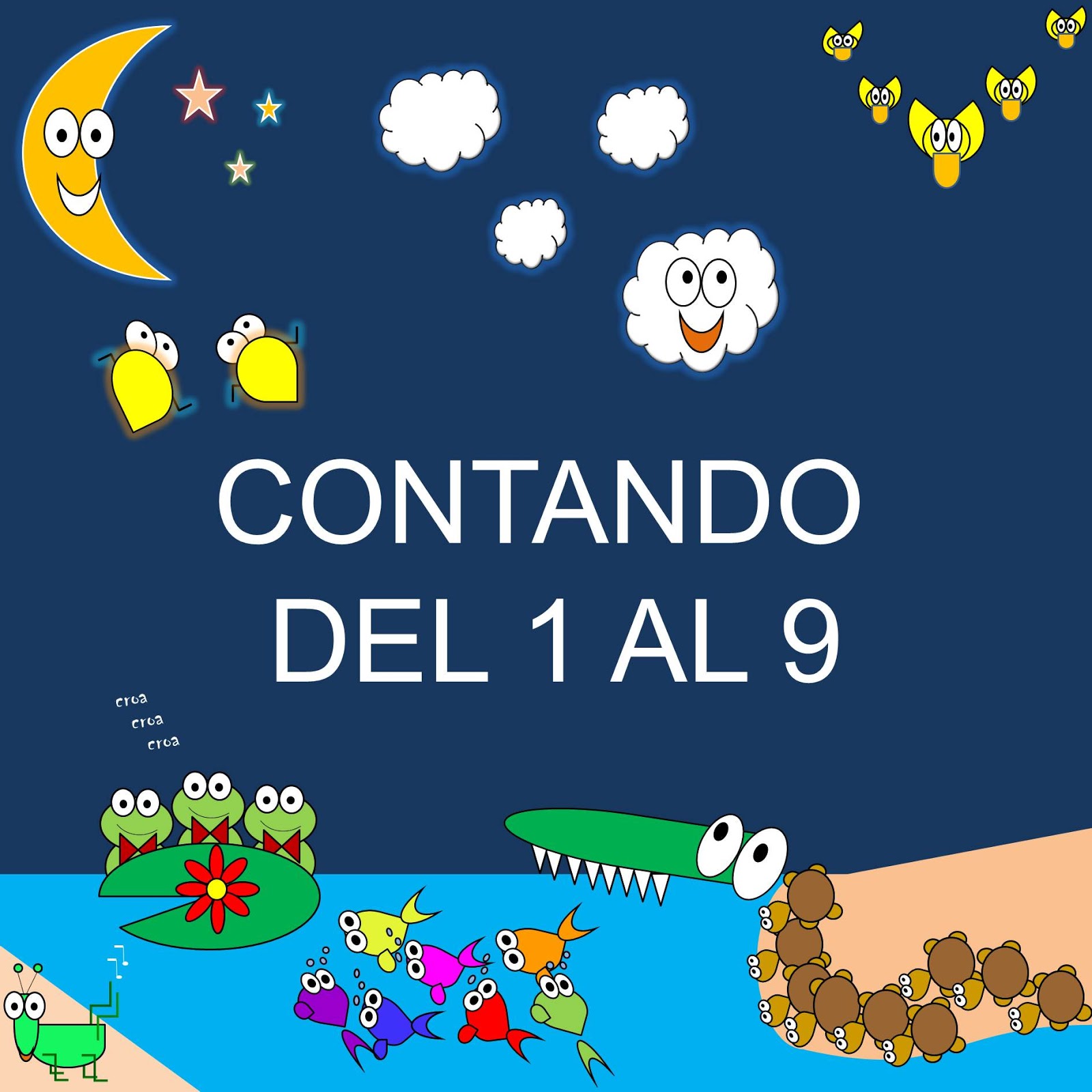 En este vídeo titulado "Contando en el Pantano", se enseña por medio de los animales, los números del 1 (uno) al 9 (nueve), con un poco de animación, voz y sonido.